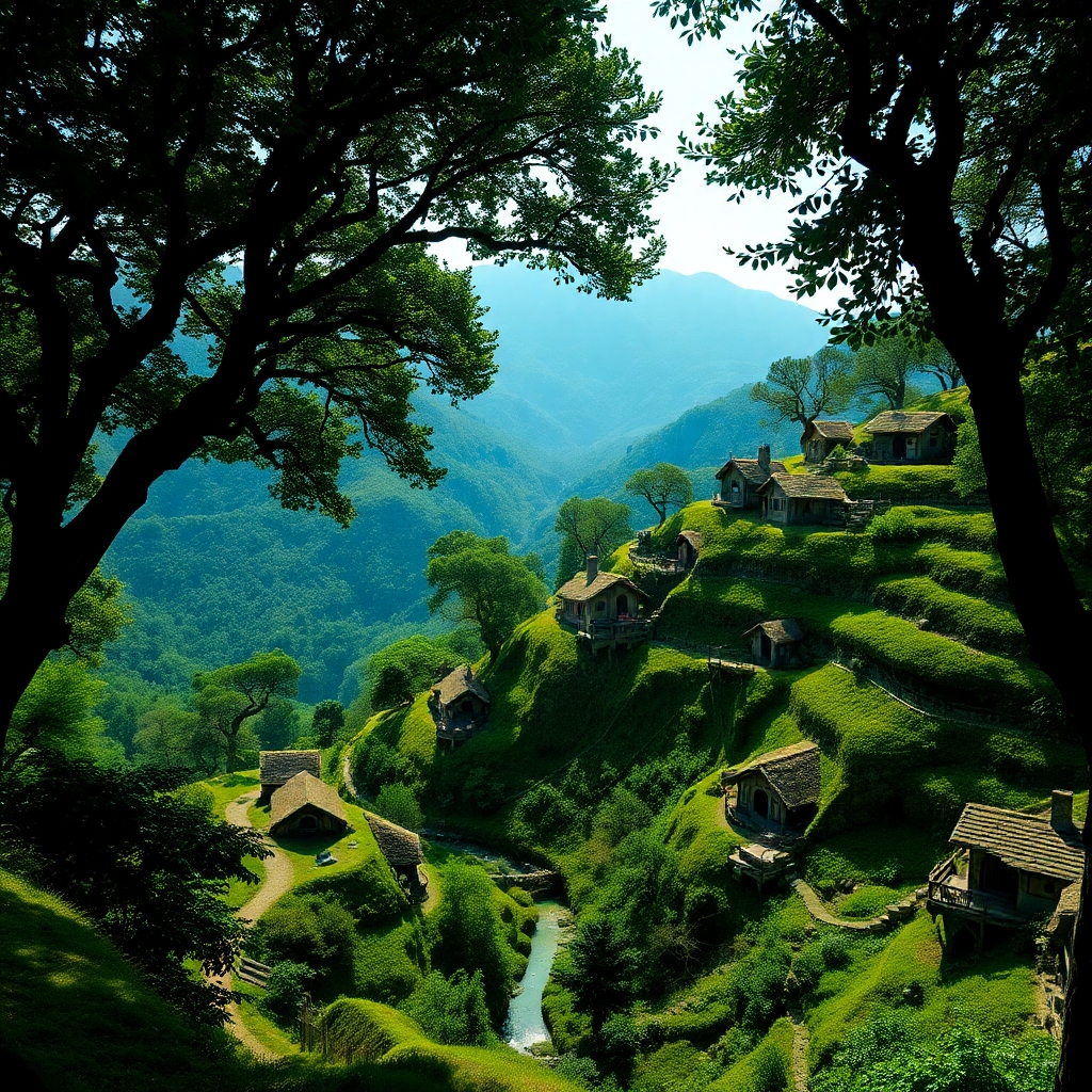 … kleine Lehmhäuser und Baumhäuser fügen sich in die Landschaft, geschwungene Wege führen durch duftende Zonen voller Leben.